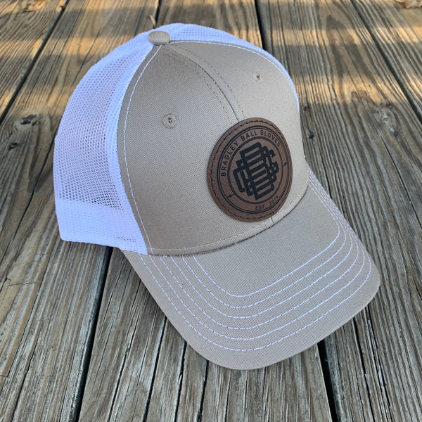 Bradley "Ball Gloves Logo" CGE Leather Patch Trucker Hat White/Khaki